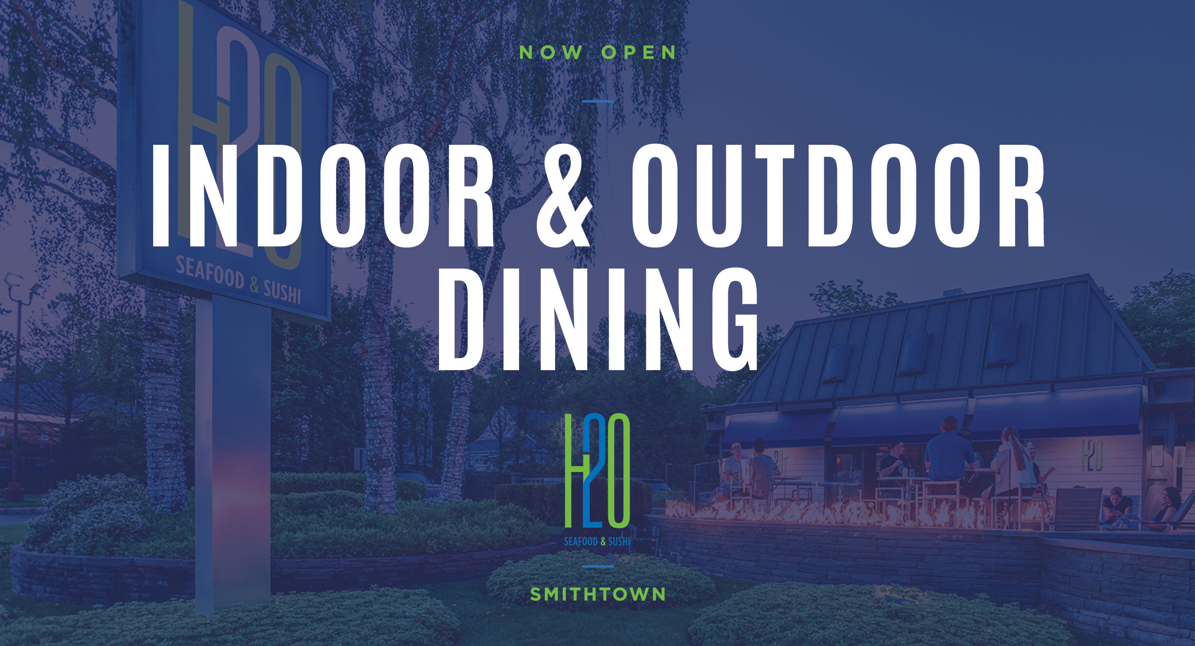 Get all the sushi you've been missing at our sister restaurant H2O in Smithtown. Outdoor dining on their front patio, complete with fire pit, is now open as well as their cozy indoor dining room!